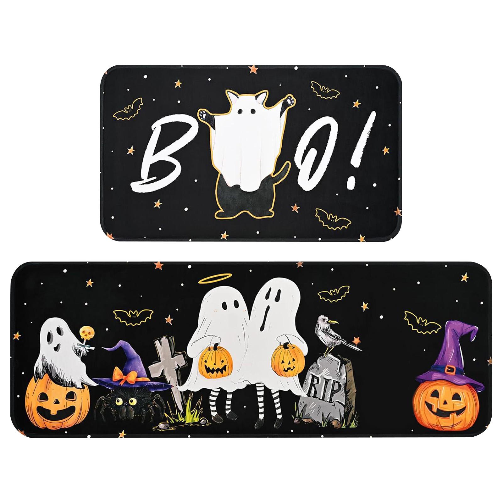 Хэллоуин Призраки И Ужас Горошек Кухонный Коврик Набор из 2 предметов, Забавные Кухонные Коврики, Подходят Для Домашнего Использования S чёрный