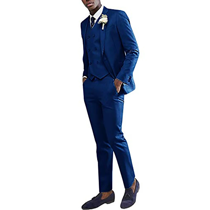 Men's Fashion 3 Piece Suits Casual Slim Fit Wedding Party Tuxedo Groom Jacket Vest and Pants Sets Formal Office Business Blazer