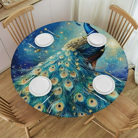 PALNKART Peacock Feathers Stars Round Tablecloth Stain-Resistant Washable 46 -50