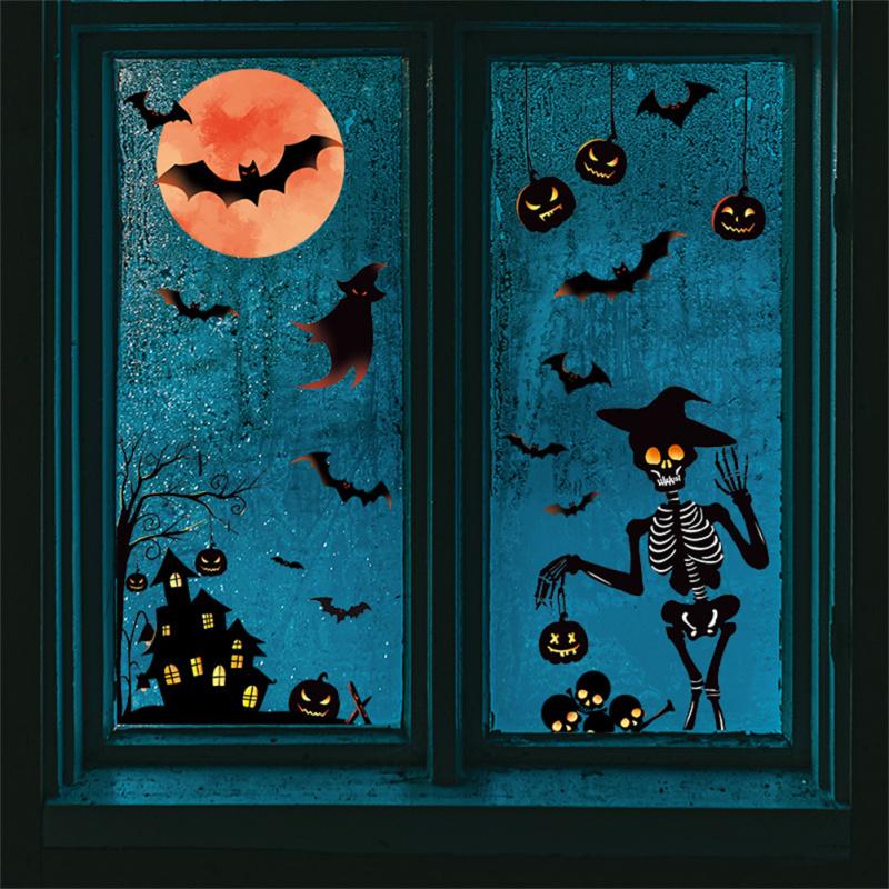 Хэллоуин наклейки на окна наклейки призрак тыква череп летучая мышь цепляется за окно праздничные атрибуты для дома