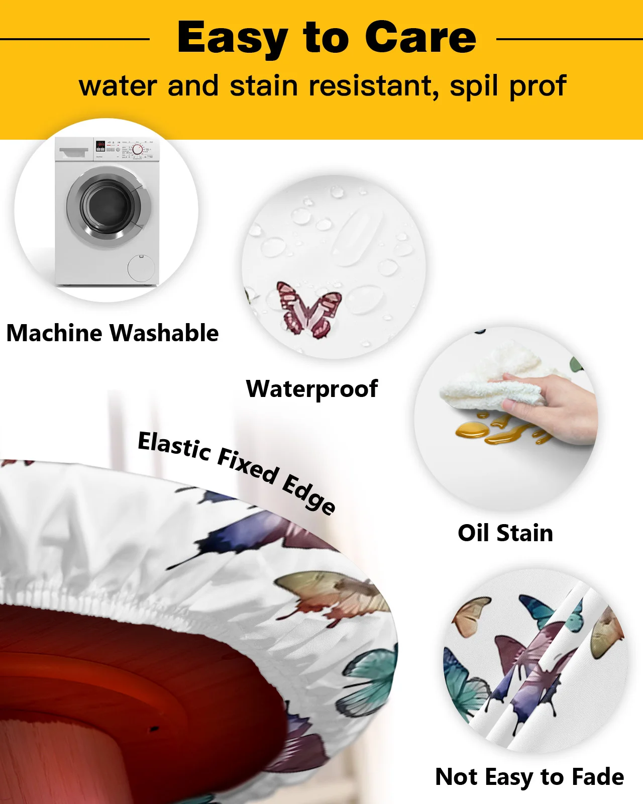 Цветная круглая прямоугольная скатерть с бабочками, водонепроницаемая эластичная скатерть для украшения дома