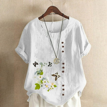 Fatuov T Shirts for Women Casual T-shirts Bustier Tops for Women Short Sleeve New Fashion for 2023 Round Neck Blouses on Clearance White 2XL