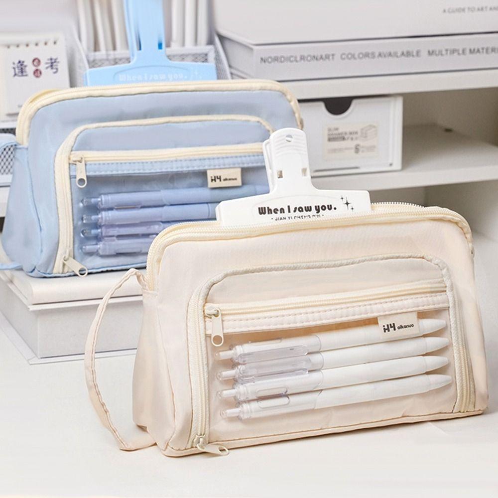 School Supplies Canvas Zipper Large Capacity Stationery Holder Box Pencil Pouch Pen Case Pen Bag