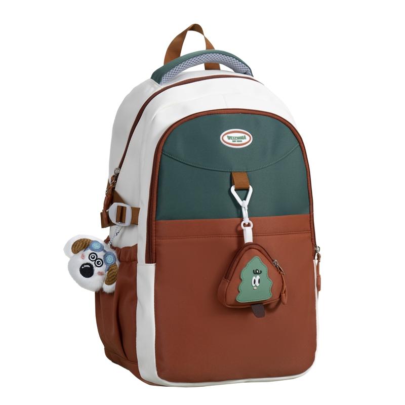 Цветной блок Рюкзак женский большой вместимости для учениц средней школы зелёный