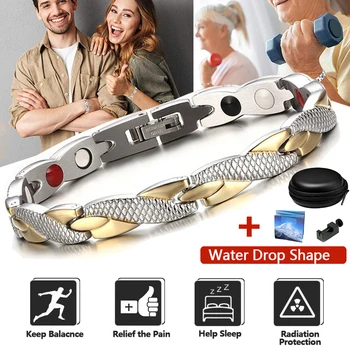 Therapy Health Bracelet Men Stainless Steel 316L Snake Shape Fine Bracelet for Arthritis Pain Relief Help Sleep For Men