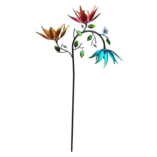 Цветок Ветер Spinner Украшение Кола Непогода Открытый Сад Двор Крыльцо Газон Роторная Красочная Ветряная Мельница Металлический Spinner Земляной Шип Орнамент