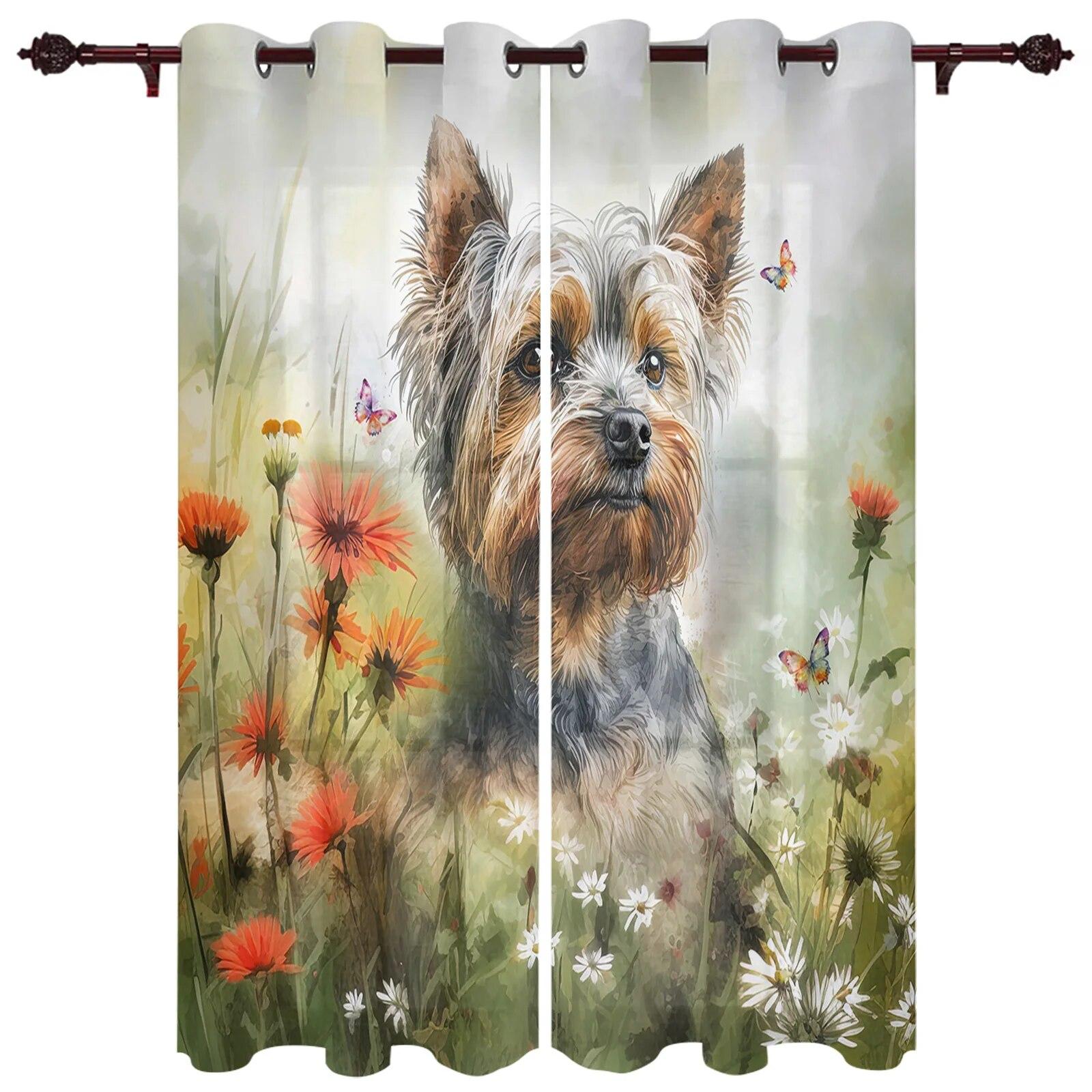 Цветок Собака Акварель Бабочка Шторы для Спальни Гостиной Оконные Шторы Обработки Жалюзи Кухня Домашний Декор Шторы