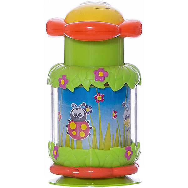 Развивающая игрушка для малышей старше года представляет собой волчок, который оформлен в виде цветочка. Игрушка устанавливается на пол (на стол, тумбочку), малыш нажимает на цветочную серединку и запускает бабочку в полет. Бабочка изображена на панели внутри колбы, во время вращения бабочка будто летит. Игрушка развивает зрительное восприятие, логическое мышление, наблюдательность.