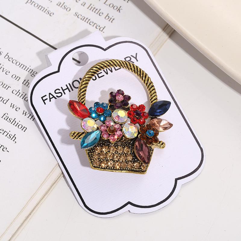 Цветочная брошь с бриллиантами в виде ниши, цветочная корзина со стразами, значок с драгоценными камнями для женщин