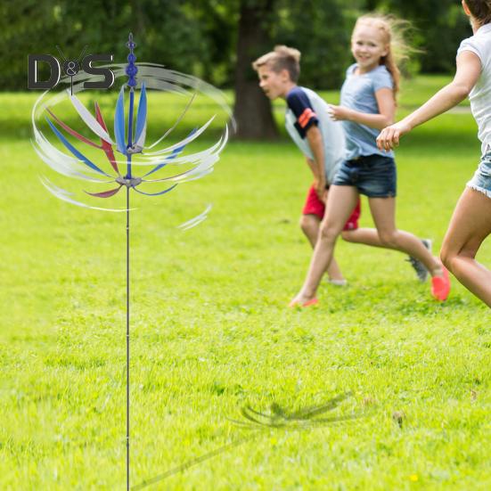 Цветочная ветряная мельница с колышком, устойчивая к погодным условиям, для сада, двора, газона, металлическая вращающаяся ветряная мельница, украшение для земли синий