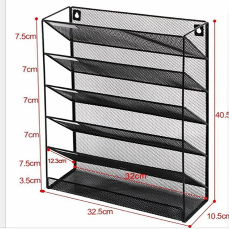 Five-layer Wrought Iron File Storage Rack Wall-mounted Magazine Newspaper Basket Organizer Creative Decoration Holder
