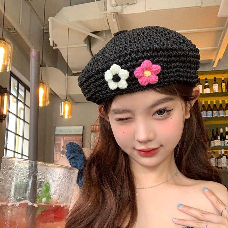 Цветочная плетеная шляпа рыбака берет ретро дышащая защита от солнца полая шляпа художника летняя соломенная шляпа
