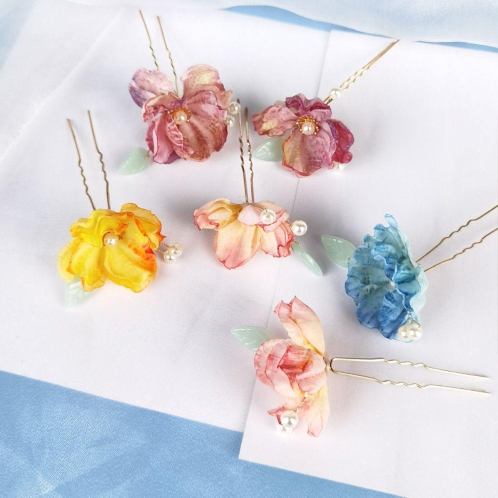 Цветочная U-образная палочка для волос металлическая палочка для волос ханьфу головные уборы искусственные цветочные палочки для волос для женщин