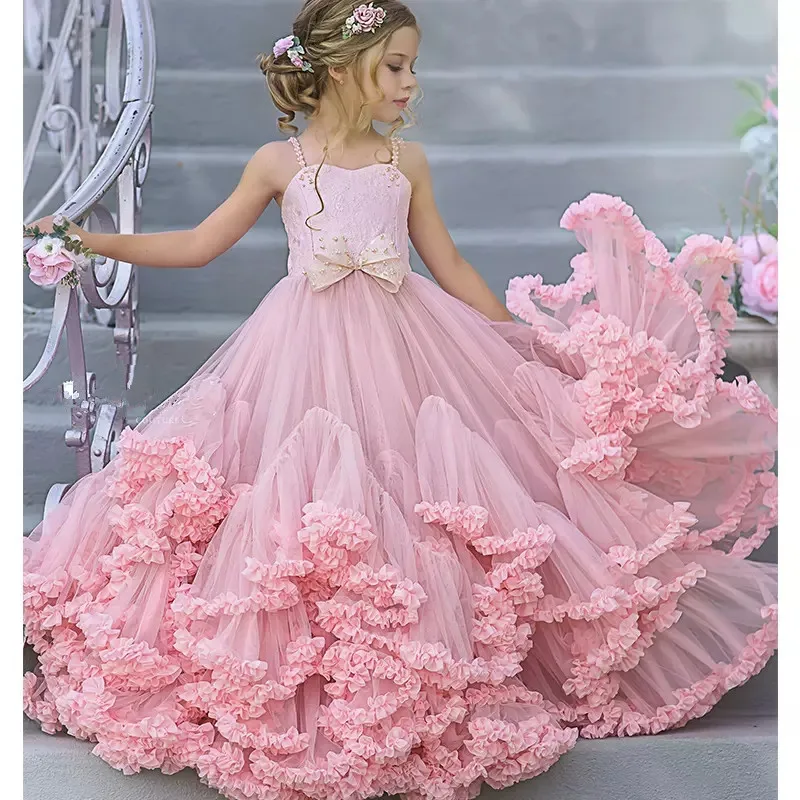 Цветочные платья для девочек, кружевное Тюлевое платье для дня рождения, милое платье принцессы для первого причастия, платья для девочек с цветами для свадеб
