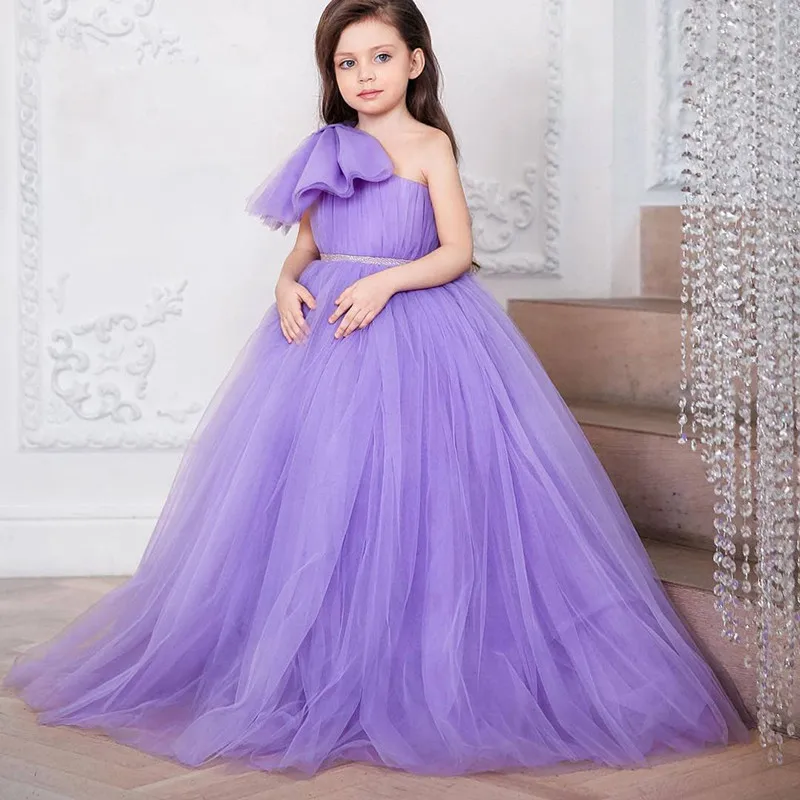 Цветочные платья для девочек, фатиновые пышные платья для первого причастия на одно плечо, детское платье на день рождения с узлом