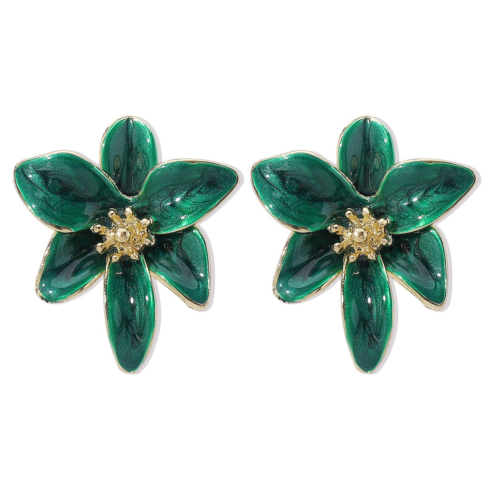 Цветочные серьги-капли Легкие капли Масляные серьги Гипоаллергенные Подвески для ушей в форме цветка Эмалевое украшение ручной работы зелёный