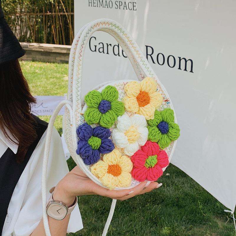 Цветочные хлопковые веревочные сумки для женщин, тканая сумка ручной работы, летняя милая пляжная сумка-тоут, сумка через плечо на шнурке, кошелек