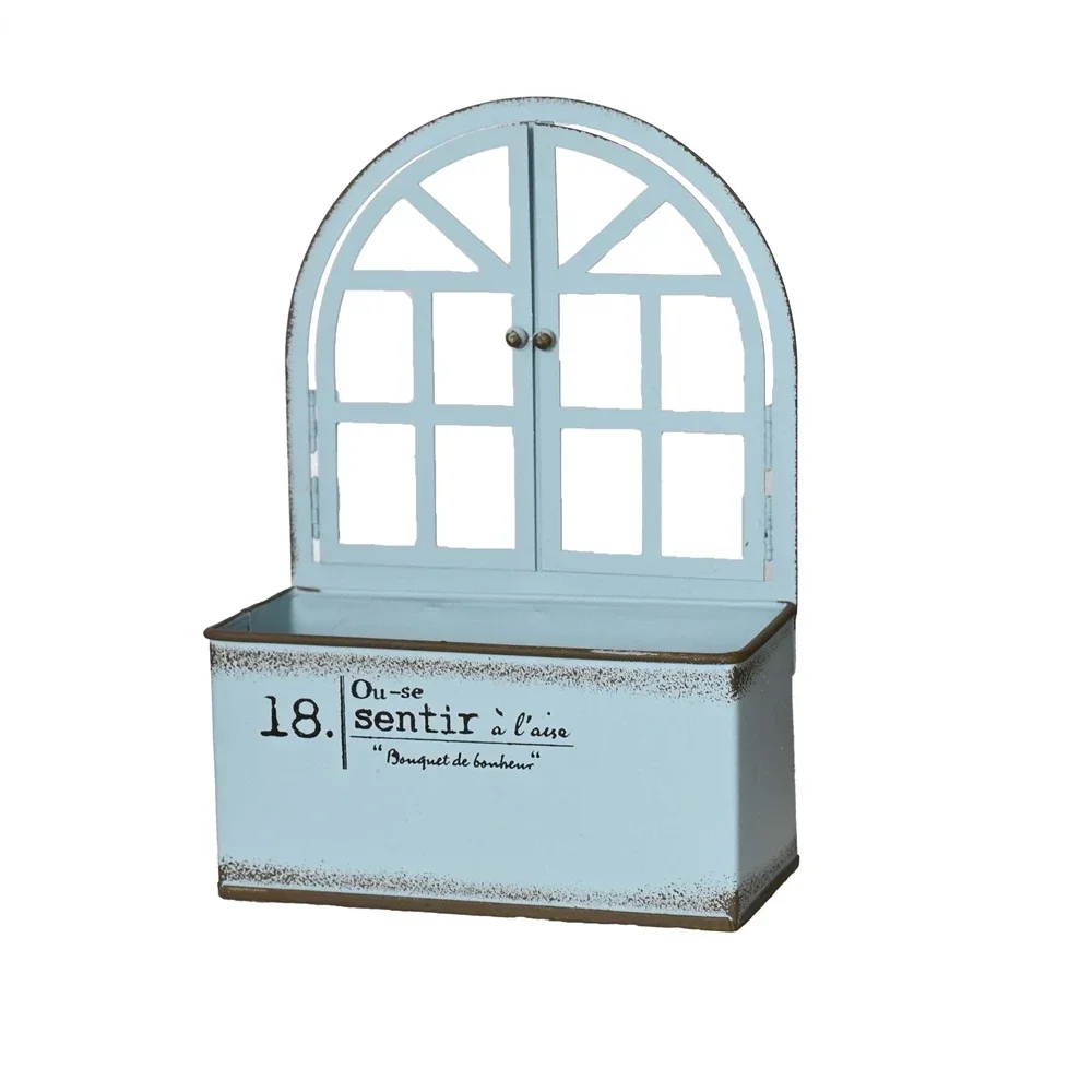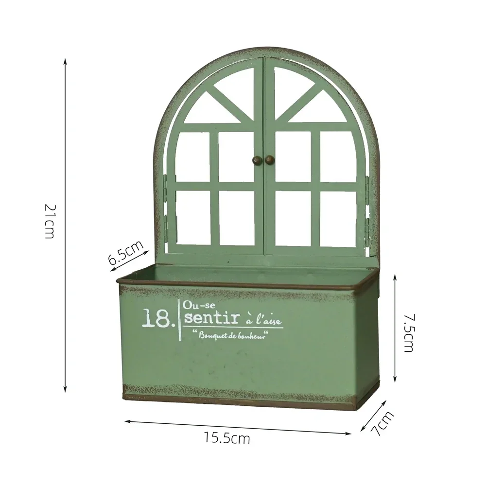 Цветочный горшок в форме окна, металлическая железная зеленая Оригинальная ваза для растений, квадратное настенное украшение для виллы, двора, сада