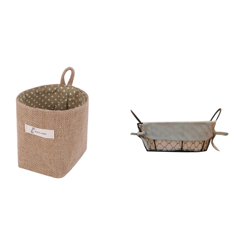 Цветочный горшок из хлопка и льна 2 шт., маленький мешок, подвесная корзина для хранения из джута и хлопка в горошек с металлической проволок...