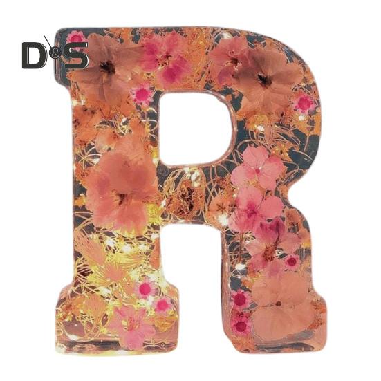 Цветочный смоляной ночник, прессованные цветы ручной работы в смоляных буквах, лампа, настольный декор, светящиеся цветочные буквы, подарок для мамы, жены R