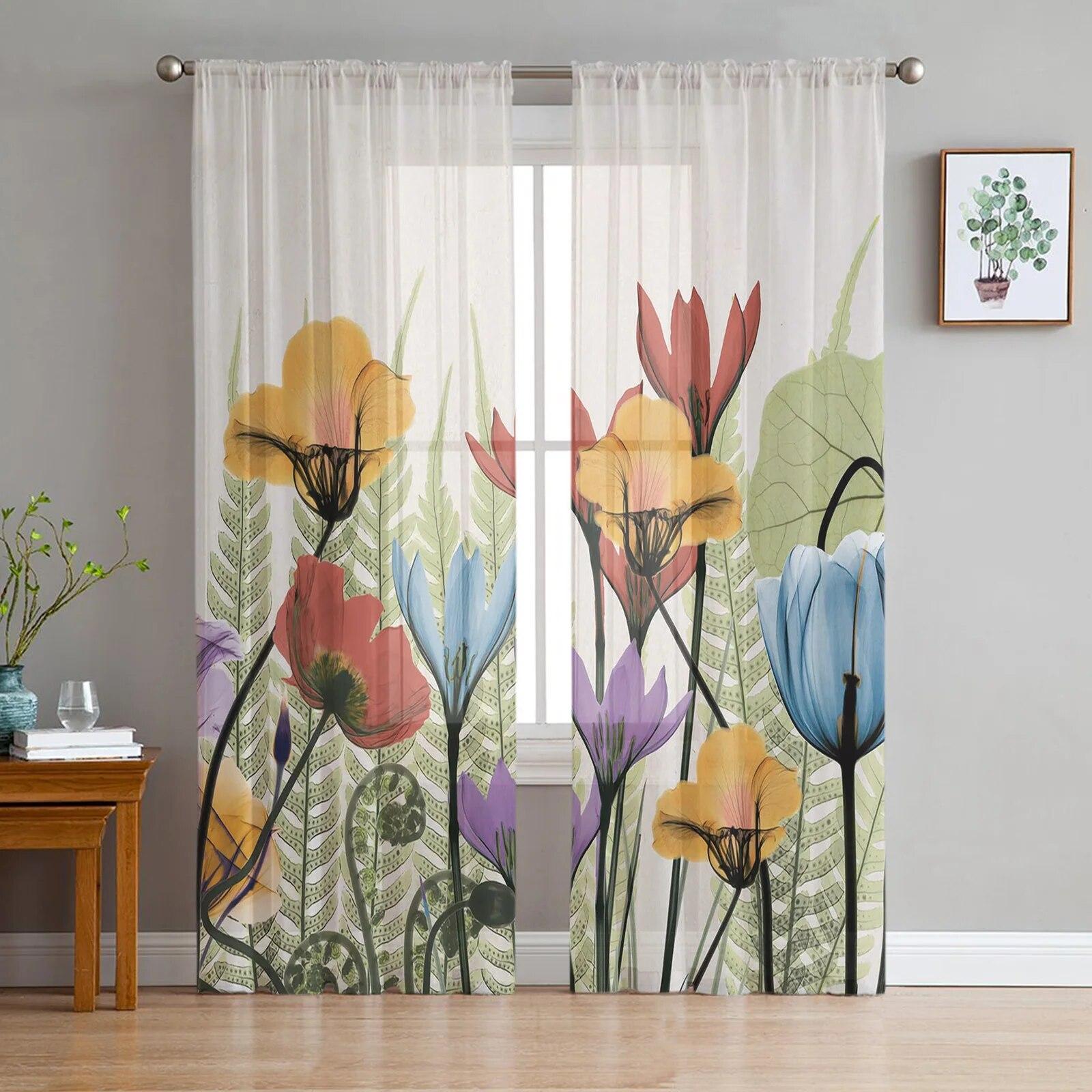 Цветы яркие цвета ручная роспись прозрачные шторы для гостиной современная вуаль занавеска для спальни тюлевые шторы оконные шторы W135 x H114cm