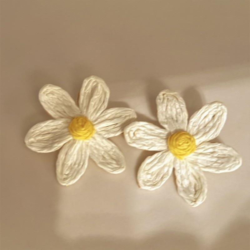 Цвет рафия плетеные серьги-пусеты в виде цветка темпераментные модные серьги в стиле отпуска супер фея дофаминовые милые серьги женские