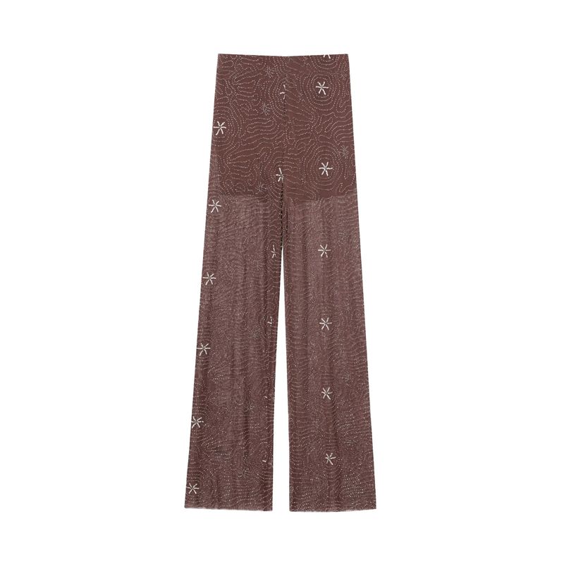 Цвет тумана Ограниченный Нишевый Стиль Причудливый Прозрачный Тюль Пайетки и Бисероплетение Супер Милые Элегантные Брюки Широкие Штанины Coffee L