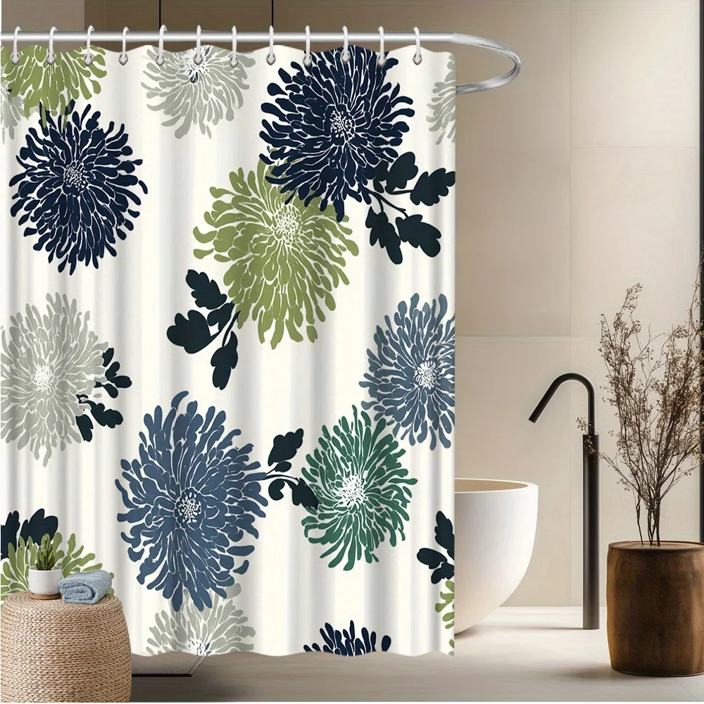 Цельная занавеска для душа с принтом хризантемы, полиэфирная ткань, можно стирать в машине, с крючком, подходит для украшения ванной комнаты