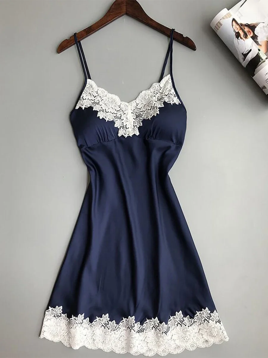 Цельная пижама, ночная рубашка с лямкой на шее, тонкая секция с подушечками для бюстгальтера, шелковая одежда для дома с кружевными краями, разноцветная мебель из ледяного шелка, ночные рубашки