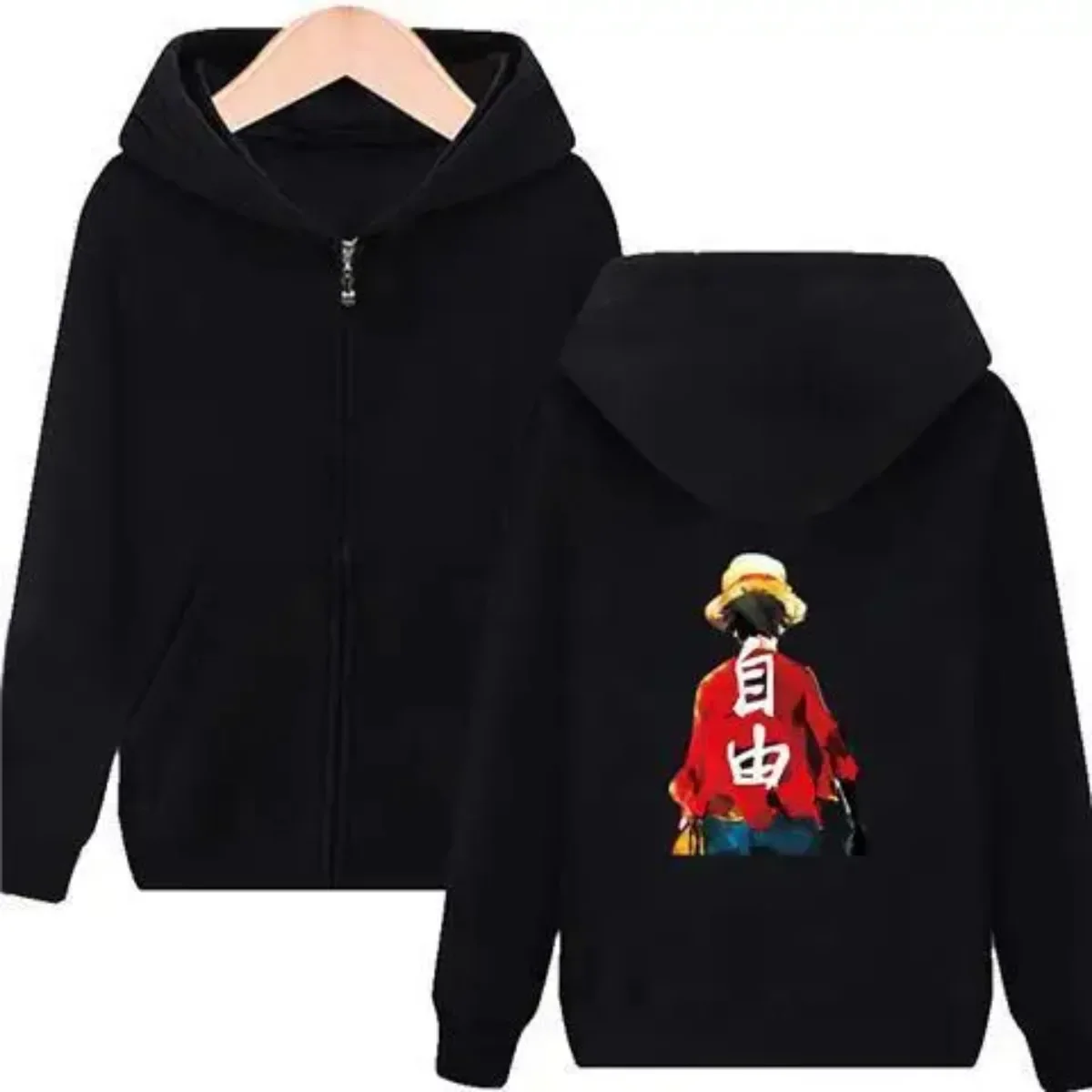 Цельная соломенная шляпа с трендом Луффи, черная толстовка с капюшоном в стиле пирата, хлопковая повседневная осенне-зимняя уличная мода с принтом на спине в стиле аниме