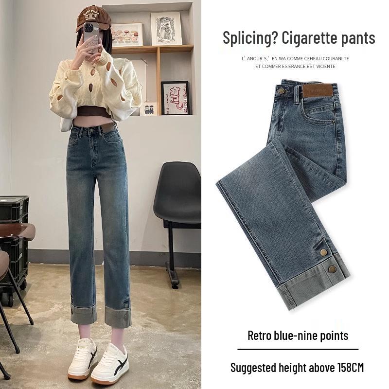 Цементно-серые укороченные брюки-сигареты с высокой посадкой и облегающего кроя для женщин - Коллекция Весна/Осень 2024 Double Extra Large