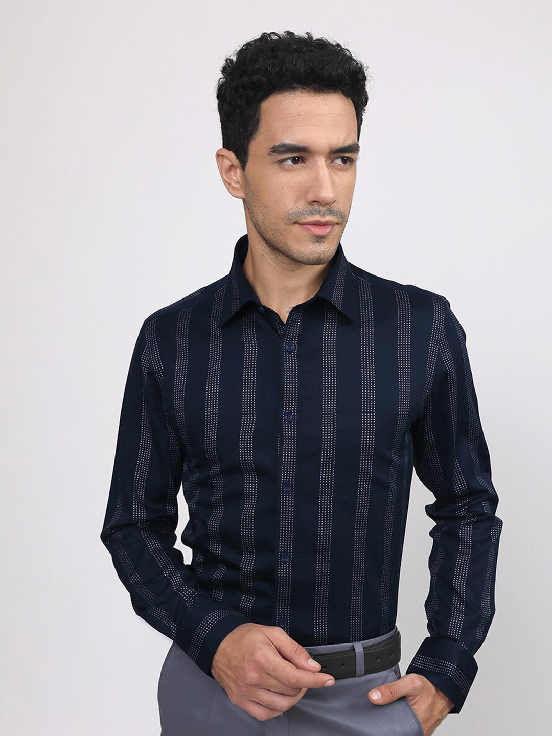 LOUIS STITCH Vertical Stripes Comfort Regular Fit Cotton Formal Shirt, Navy blue