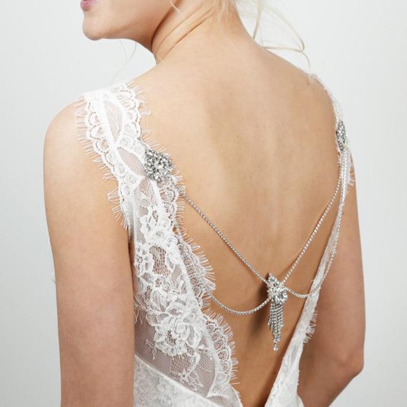 Цепочка с крестом на спине, полная капель буровой воды, Лю Су, новое темпераментное свадебное платье невесты, цепочка на спине