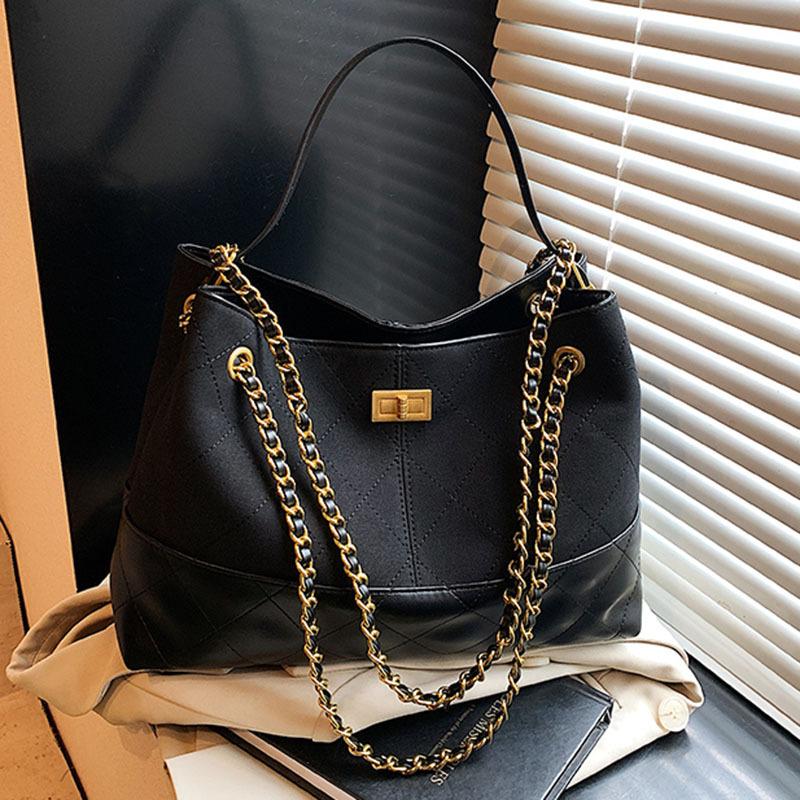 Цепочная сумка женская большой вместимости новая осенне-зимняя матовая ретро на плечо сумка-мессенджер сумка-тоут для поездок на работу чёрный