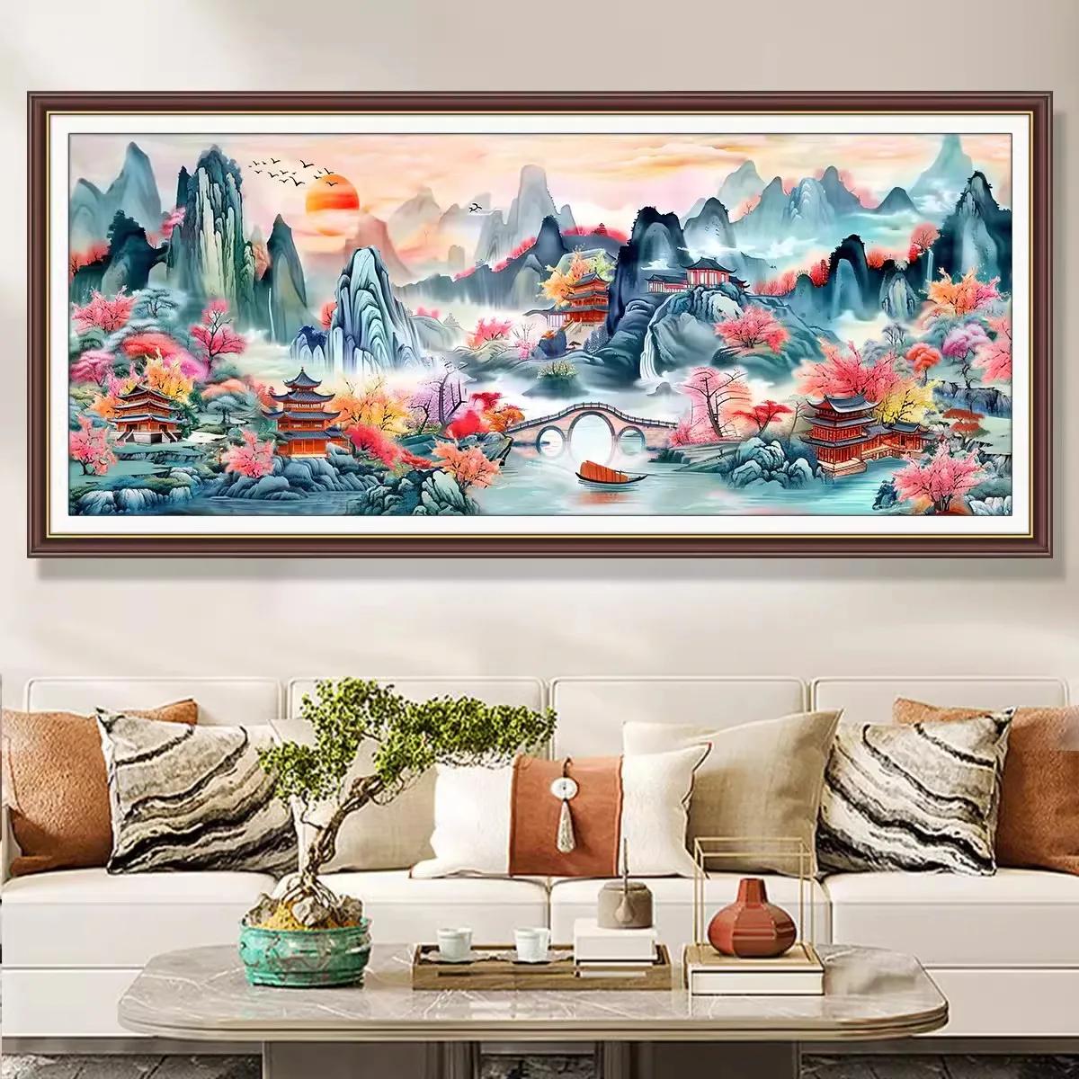 Цзяннань Чудесные Горы Большая 5D DIY Алмазная Живопись Вышивка Крестом Реки Пейзаж Полная Мозаика из Страз Наборы для Вышивания Full Round 20x60CM