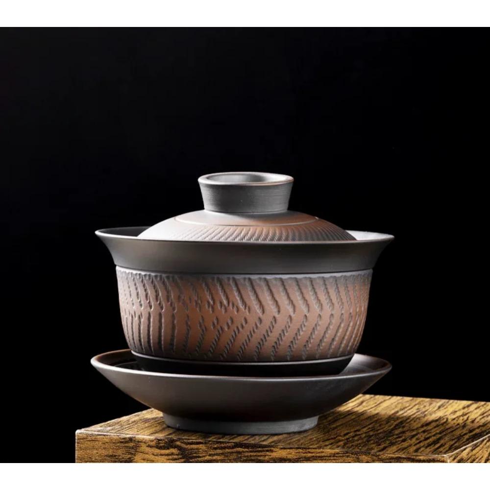 Цзяньшуйская глина Фиолетовая керамика Резьба Чайник Ручная роспись Антикварный рельефный чайник Бытовой чайник Набор для чая Кунг-фу Чайник
