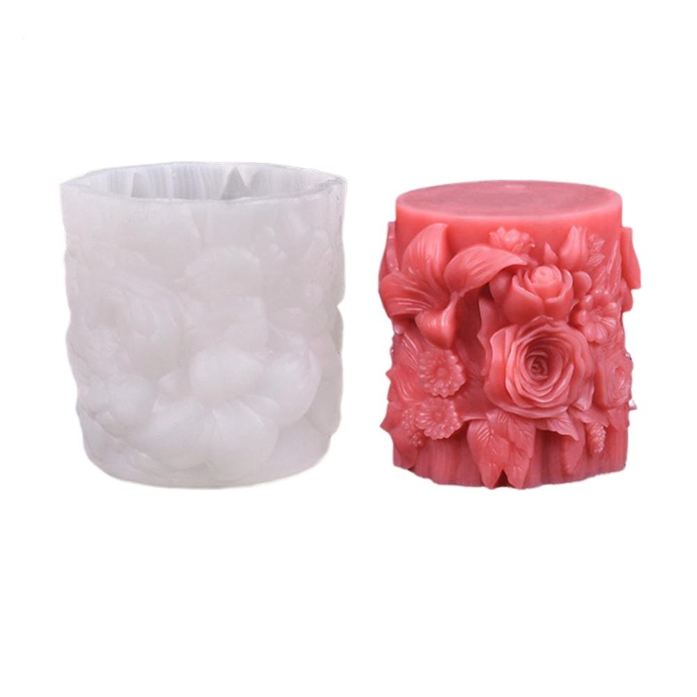 Цилиндрическая форма для свечи с рельефом цветов, силиконовая форма для смолы в виде розы, форма для цилиндрической свечи с цветами, для изготовления свечей Style A