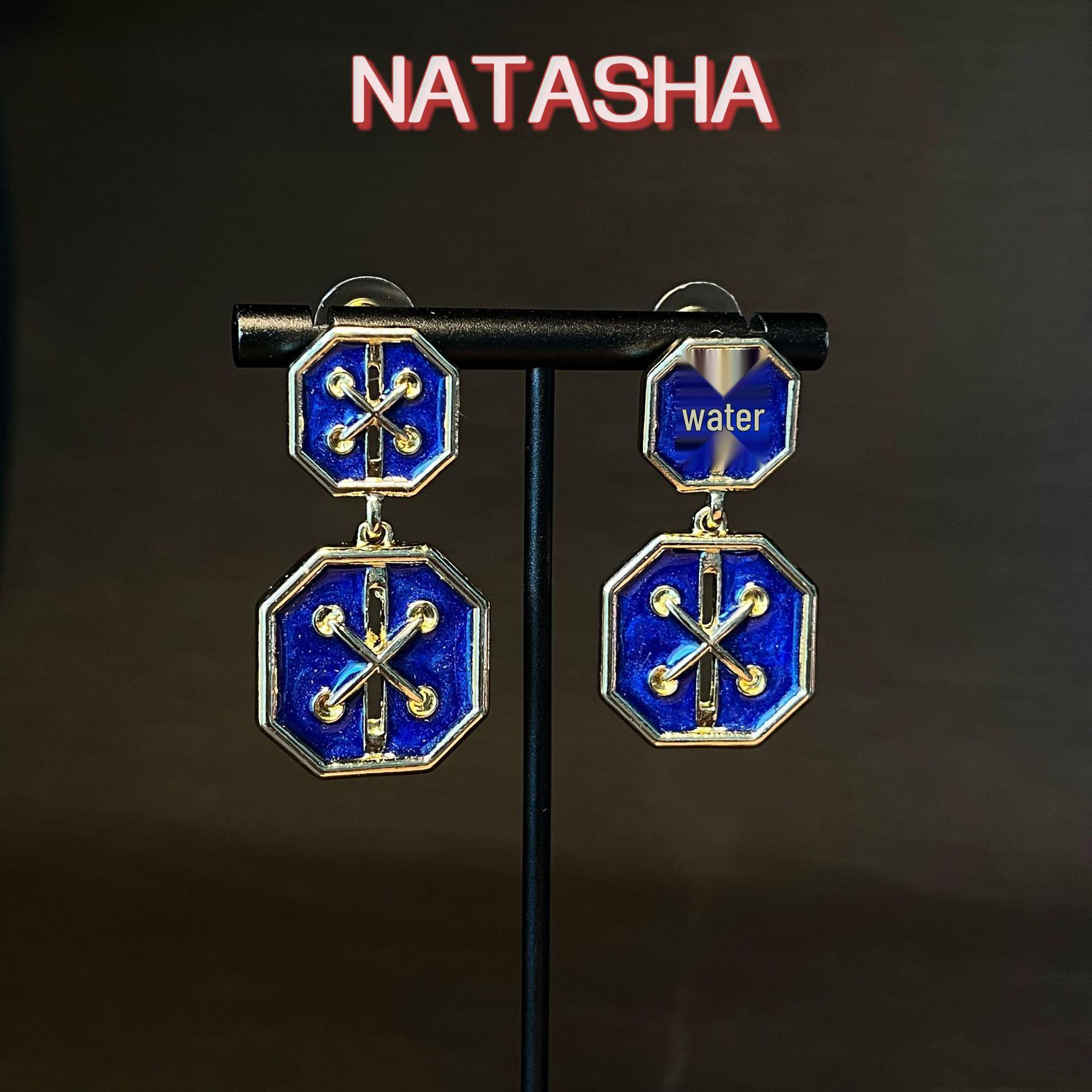 Циндао Винтажные Синие Эмалевые Квадратные Серьги-Подвески - Ретро Стиль для Женщин