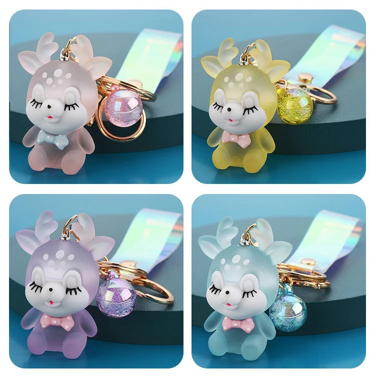 New Sika Deer Led Light Keychain Car Key Chain Key Ring Cartoon Animal Pendant Keyring for Favorite Sportsman Gift Accessories