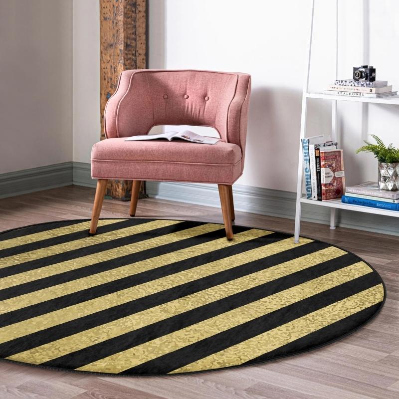 Цифровой печатный современный офисный моющийся нескользящий круглый ковер с золотой надписью «С днем рождения» на черном фоне
