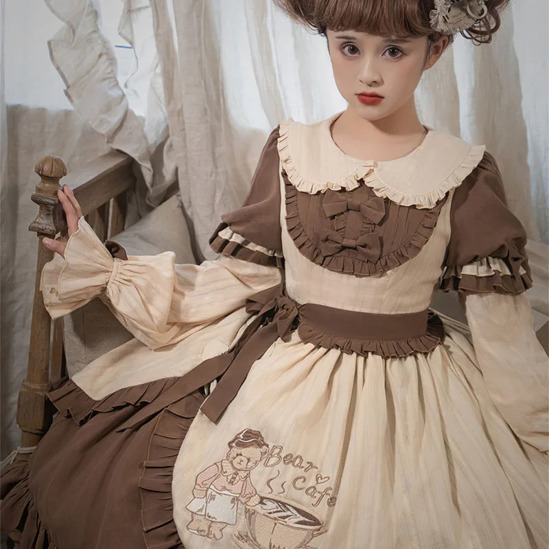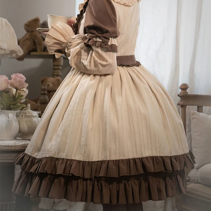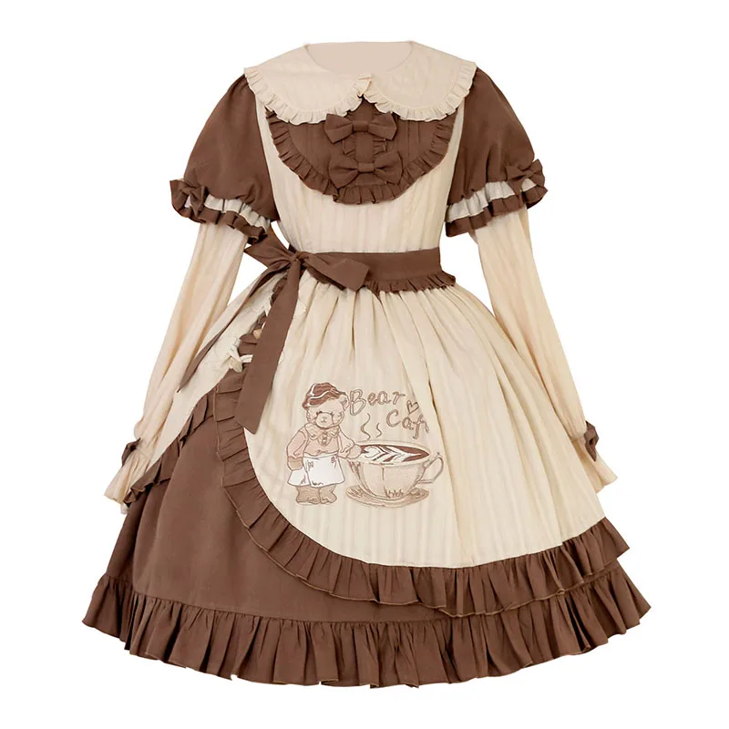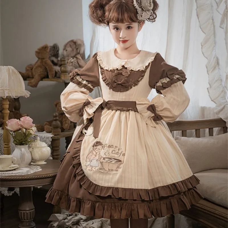 Чайная Вечеринка кофейная коричневая горничная Лолита оп-платье воротник Питер Пэн Симпатичные платья с длинным рукавом ОП милая девочка кавайное японское аниме женское