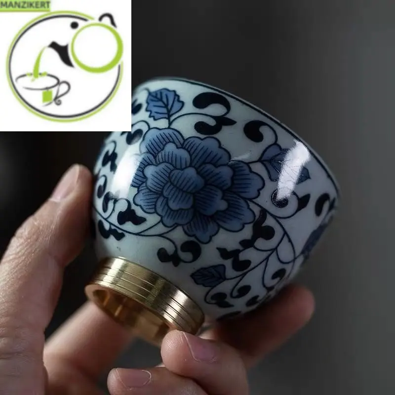 Чайная чашка с синим узором, Большая Медная Керамическая чашка в ретро стиле, индивидуальная чашка Kombucha, керамические чашки