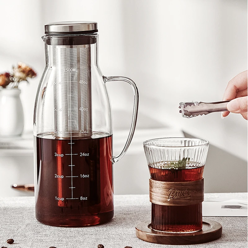 Чайник для холодного кофе, герметичная Силиконовая крышка, стеклянный ручной фильтр для кофе, чайник из нержавеющей стали, чайный горшок, по...