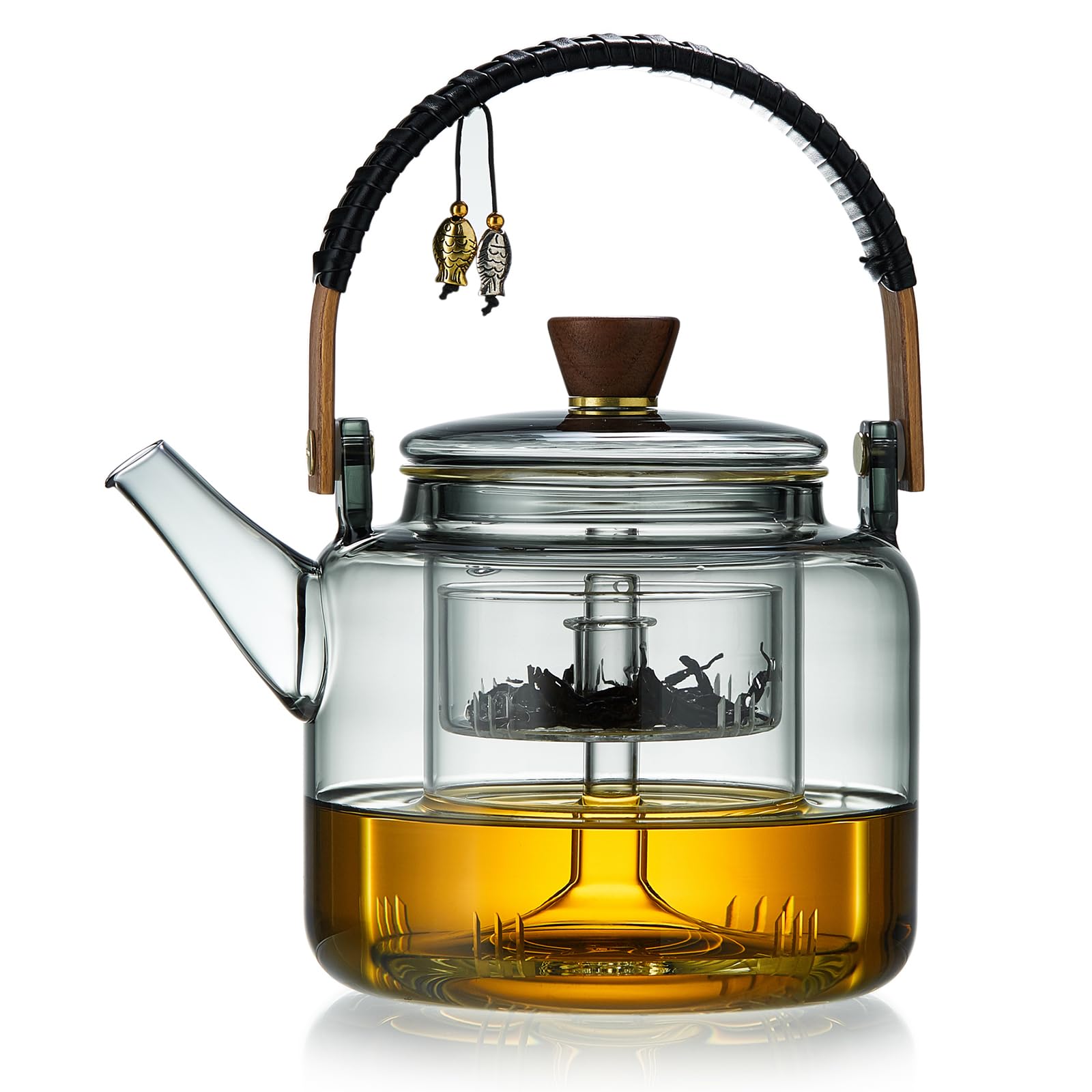 Чайник для чая Pokaro, жаропрочный стеклянный чайник, стильный черный чайник, прозрачный стеклянный чайник, подходит для открытого огня, большая емкость 1090 мл