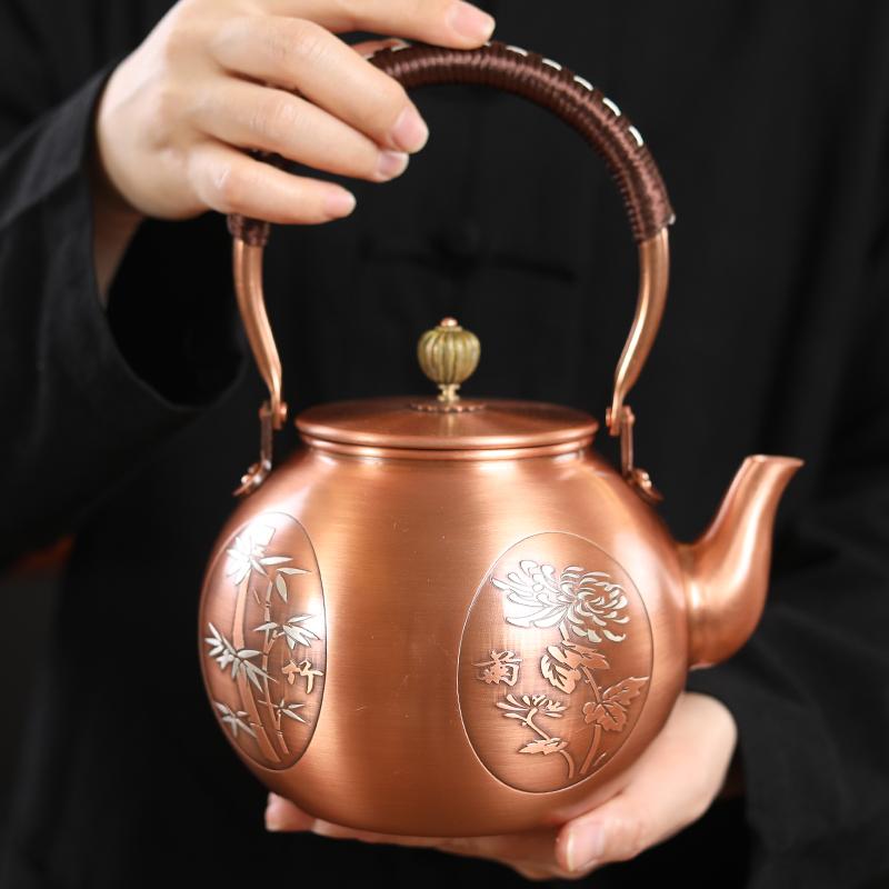 Чайник ручной работы из фиолетовой меди, бытовой чайник с подъемной балкой для кипящей воды, чайный набор в стиле кунг-фу из чистой меди