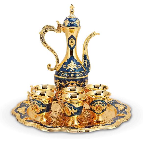 Чайные сервизы, Винтажный кофейник с 6 кофейными чашками и подносом, Роскошный чайный сервиз, Набор для чаепития, Художественные ремесла, Свадебный подарок