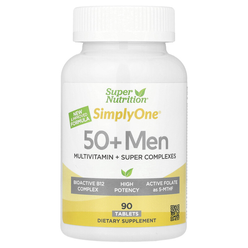 Super Nutrition, Simply One, мультивитамины для мужчин старше 50 лет, с суперадаптогенами, зеленью, специями и антиоксидантами, 90 таблеток