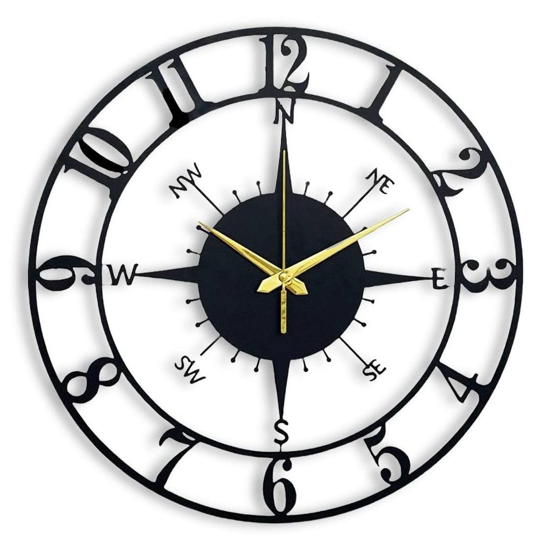 Часы для дома и холла, гостиной, спальни, офиса, антикварные большого размера современные настенные часы для домашнего декора (Стиль 1, 50 см) Матовый черный, Аналоговый