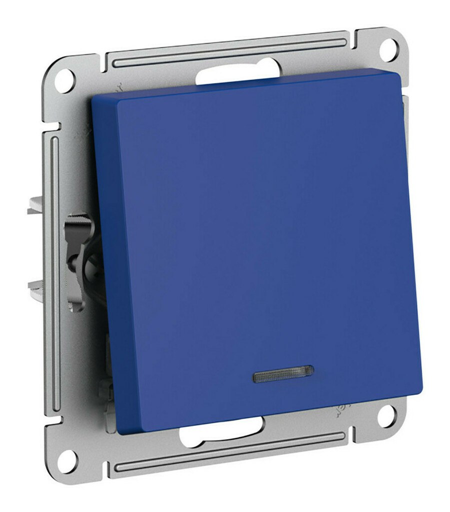 Переключатель Systeme Electric AtlasDesign, 1кл., индикатор/подсветка, скрытый монтаж, механизм с накладкой без рамки, аквамарин (ATN001163)