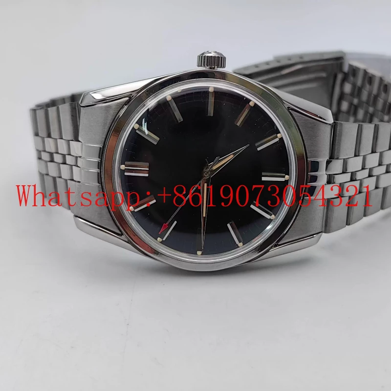Часы с механизмом 2851, ручные, самоносные, в подарок, черная пластина, плоская пластина, стальной корпус, зеркало из смолы 34, отремонтированное